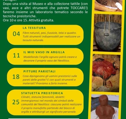 Visite al Museo Laboratorio della Preistoria e Laboratori tematici secondo le tecniche preistoriche. All’interno del progetto “L’Arte avrà cura di te” di UNI.VO.C.A., il Museo Laboratorio della Preistoria di Vaie ha organizzato 4…