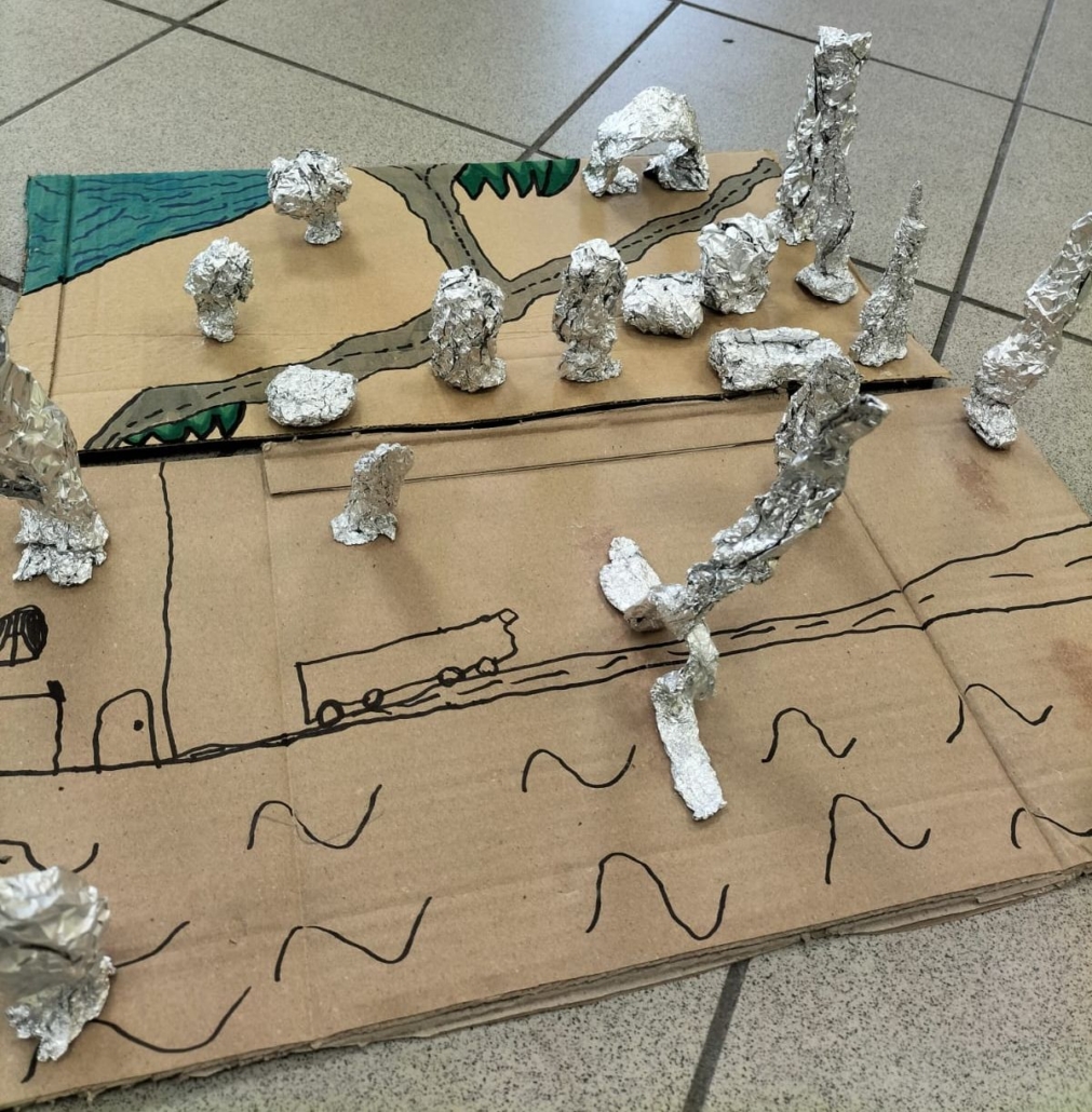 Ciascuno ha lavorato sulla propria porzione di città, definendone arterie, strade e palazzi, modellando edifici e monumenti in carta stagnola.